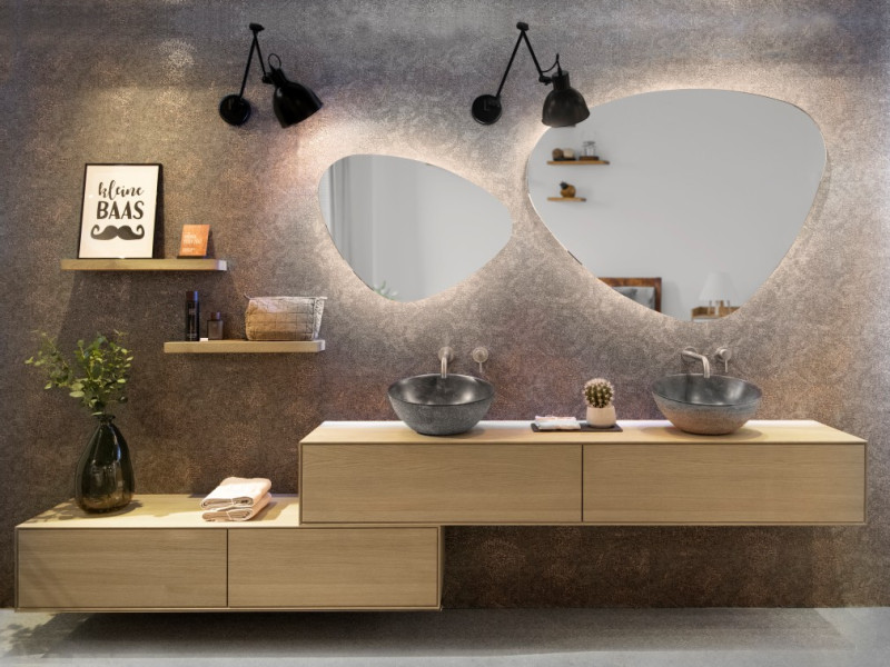Hierbij kunt u denken aan massief eikenhouten badmeubels, handgemaakte keramische waskommen, spiegels in alle vormen en maten (eventueel voorzien van verlichting en/of verwarming), luxueuze opbergoplossingen en handige badkameraccessoires zoals handdoekrekjes, krukjes en badplankjes. Ook de indrukwekkende collectie met LoooX sfeerverlichting voor de badkamer is echt het bekijken waard.
