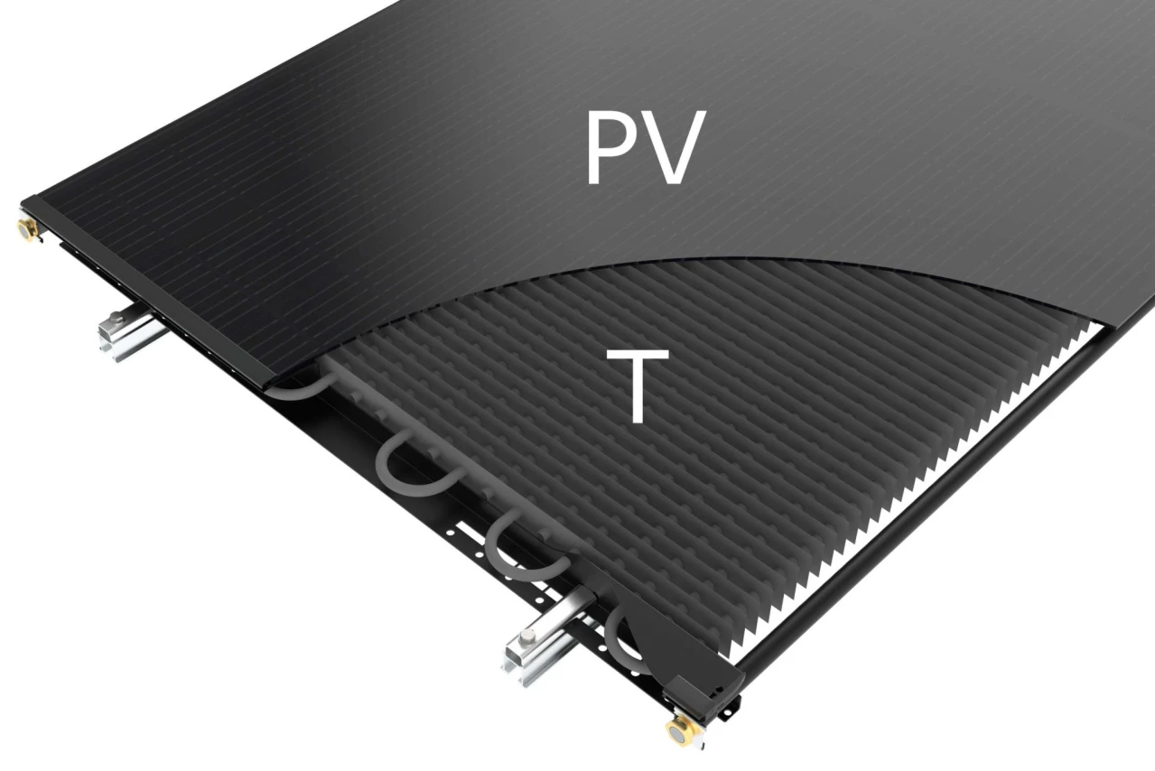 Een PVT-warmtepomppaneel bestaat uit een PV (fotovoltaïsch) gedeelte, dat zonlicht omzet in elektriciteit, en een thermisch (warmte-overdragend) gedeelte, dat de warmte van de zon opvangt. Het PVT-warmtepomppaneel wordt gekoppeld aan een warmtepomp. Op die manier is het mogelijk om uw woning op een duurzame wijze te verwarmen, van warm water te voorzien én elektriciteit te leveren. Het is zelfs mogelijk om Triple Solar te gebruiken om uw woning in de warmere maanden van het jaar te koelen. Dit innovatieve systeem werkt het hele jaar door, zonder gebruik van gas.